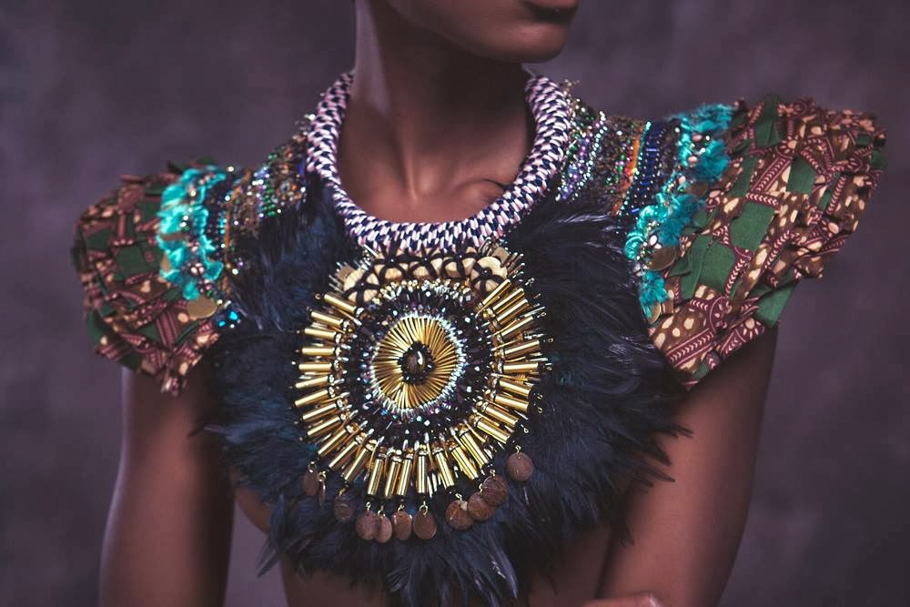 The queen of statement pieces: Anita Quansah London. The design artist of half Ghanaian and half Nigerian heritage has just launched her new collection for Summer 2014. And what can I say, it is fantastic! You really don’t need to wear much else besides these artful necklaces. If you are interested in the price, please write the designer an email to find out more. Check-out the interview I did with Anita Quansah two years ago: “My pieces command attention.”